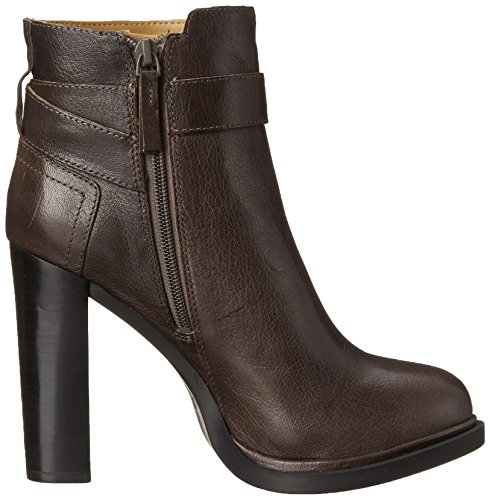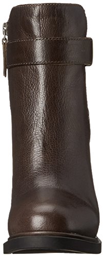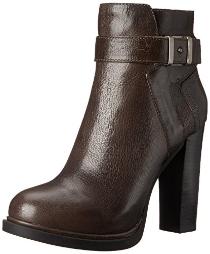 Bootie in leather featuring wrap strap at cuff and stacked block heel