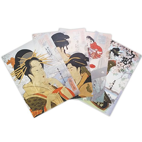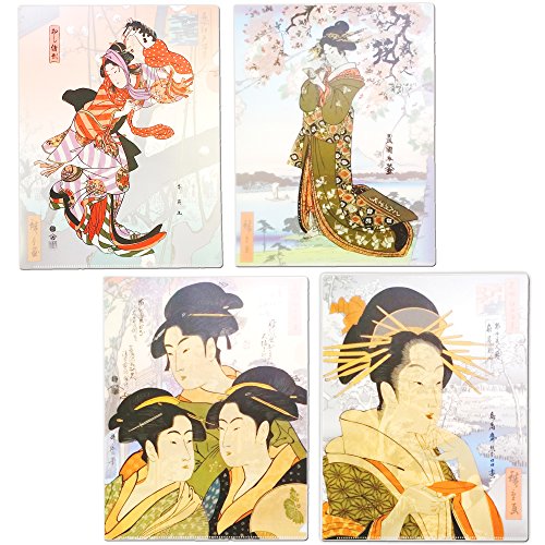 -. Feature : Vividly colored, high quality plastic sleeve made in Japan. Vividly coloreado, manga plástica de la alta calidad hecha en Japón. / Fashionable transparent file jackets decorated with a traditional Japanese ukiyo-e. Chaquetas transparentes de moda decoradas con un tradicional ukiyo-e japonés. / Combination of four bijin-ga (pictures of beautiful women) by Utamaro and other masters with landscapes by Utagawa Hiroshige. Combinación de cuatro bijin-ga (imágenes de mujeres hermosas) por Utamaro y otros maestros con paisajes por Utagawa Hiroshige. / The bijin-ga is in the front, the landscape in the background, so the image changes according to whether or not a document is inserted. El bijin-ga está en el frente, el paisaje en el fondo, así que la imagen cambia según si se inserta o no un documento. / Set of four, perfect as a gift or souvenir. Juego de cuatro, perfecto como regalo o recuerdo.