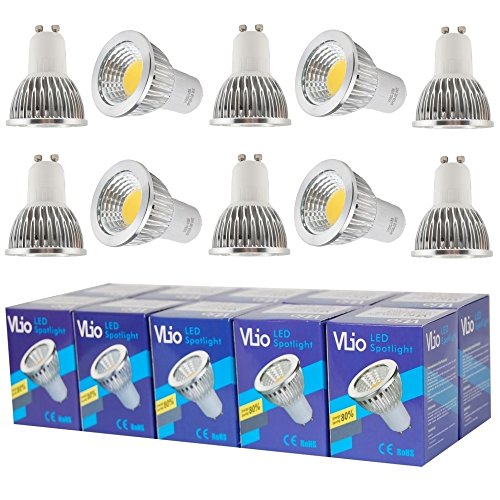 Vlio GU10 3W COB LED Bulbs Non Dimmable Spotlight 350 Lumen 45W Halogen Bulb Equivalent 3200-3500k Warm White 120 Beam Angle Energy Saving Lighting Ceiling Down light [Pack of 10pcs]