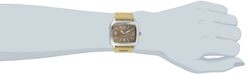 - Feature : Square silver-tone case / Brown dial with silver-tone outside minute track / Silver-tone Arabic numerals 3, 6, 9, and 12, and markers at all other hours / Silver-tone luminous hour and minute hands and sweep second hand / Tan perforated strap with a polished silver-tone stainless steel buckle