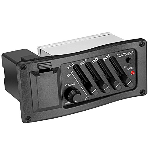 EQ 7545R pick-up equalizer system with 4 bands can be easily fitted into your acoustic guitar and it is essential to electrify and amplify their sound.^Under the saddle pickup for acoustic guitar^4 bands plus volume control^Supplied with a battery box