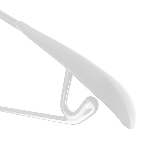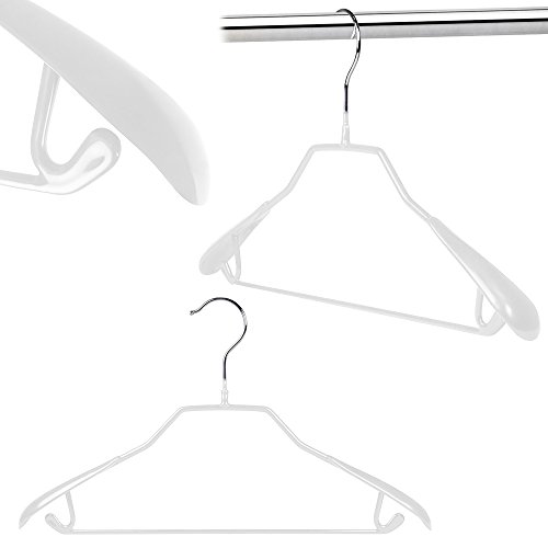 -. Feature : Pack of 5 Premium Quality Non-Slip White Vinyl Coated Metal Hangers with Bar 43cm (17"). Stylish, space saving and slim design. / Specially designed non-slip "grippy"coating keeps garments in place..Garment will not fall off!! / Shaped shoulder ends offer support and avoid "shoulder bumps" in fabric..great for delicates and woollens. / Practical strong design with bar and integral lower skirt loops / strap notches. / Suitable for hanging jackets, coats, shirts, blouses, tops, dresses, skirts, trousers, jumpers etc. Metal hook with rounded end.