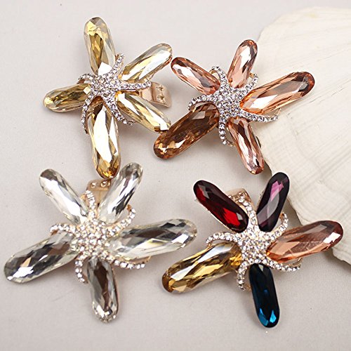 Douqu Women Fashion Starfish Shoe Clips Bling Rhinestone Crystal Wedding Bridal Shoe Clips Shoe Charms Pair (Champagne) (Colorful)