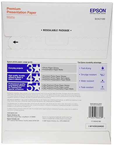Epson Premium Presentation Paper MATTE (8.5x11 Inches, 100 Sheets) (S042180)