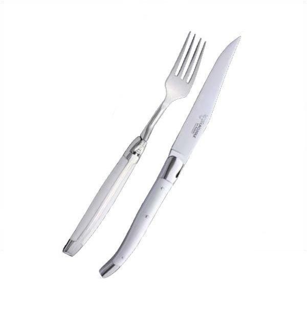 良いカトラリーは、料理の一皿をさらに美味しく演出してくれます。「ラギオール アン オブラック」のナイフ&フォークは、ナイフの本場ならではの技術の高さとハンドメイドの贅沢なあしらいが随所につまった逸品です。 |