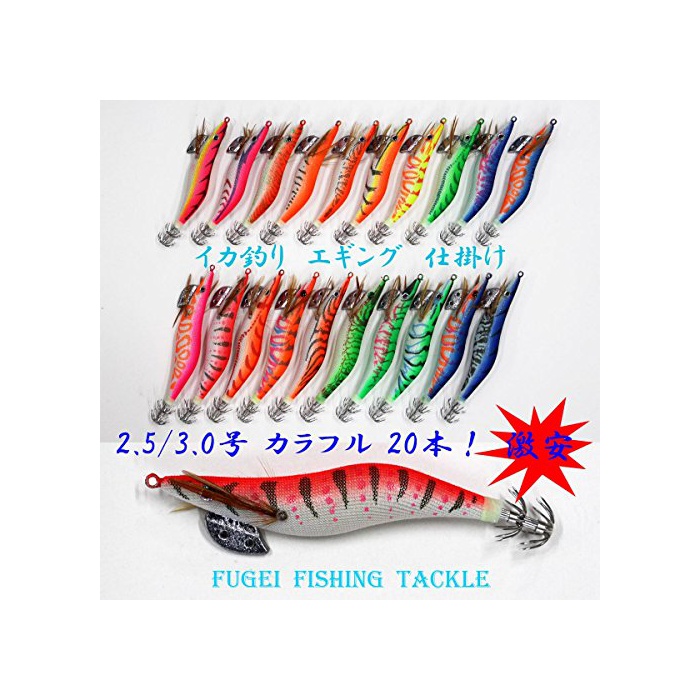 원본상품명: エギ 20本 セット 2.5/3.0 各10本 エギング用 エギ アオリイカ等 イカ釣り用 餌木【FUGEI-20egi2530hRD20】