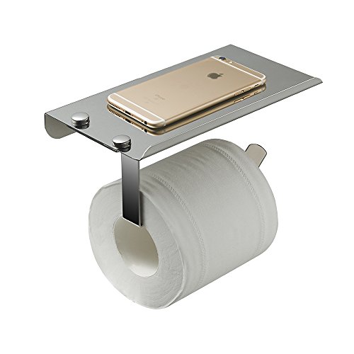 Toilet paper holder with storage shelf, Good enough to hold mobile phone, wipes, hand sanitizer, key, ashtray, watch, glasses, when you go to WC or have a shower.