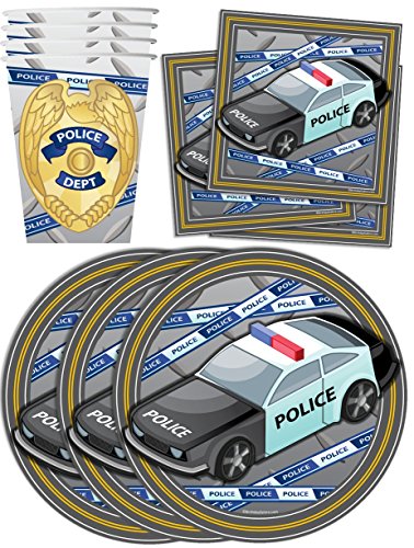 -. Title : Police Department Cop Birthday Party Supplies Set Plates Napkins Cups Tableware Kit for 16