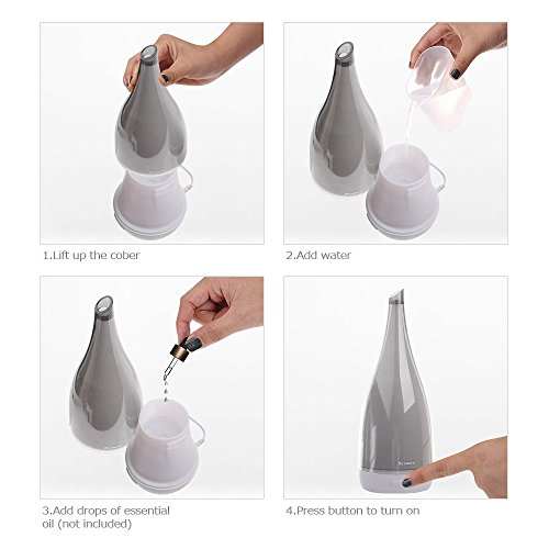 Just fill it up with water & add 2-3 drops of an essential oil/fragrance mix & power it up using the AC adapter (provided).
