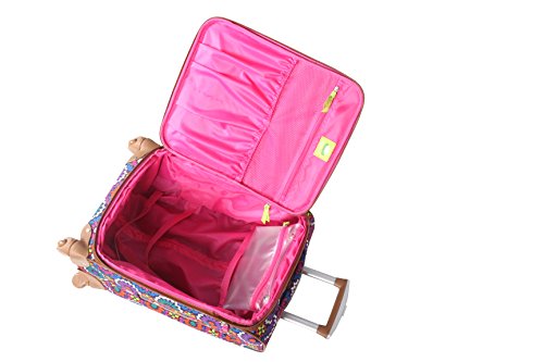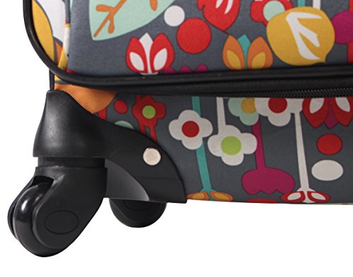 -. Brand : Lily Bloom -. Department : unisex-adult (lage only) -. Feature : Lightweight construction to avoid airline fees / 360 degree enhanced wheel system so you can glide through the airport effortlessly / Ergonomic handles that makes for a comfortable grip that won't hurt your hand / Expandable for extra packing capacity when you need it / The fully lined interior has organizational pockets to keep your belongs tidy -. ProductGroup : Apparel -. ProductTypeName : LAGE -. Title : Lily Bloom Large Expandable Design Pattern Lage With Spinner Wheels For Woman