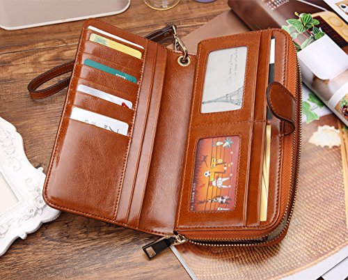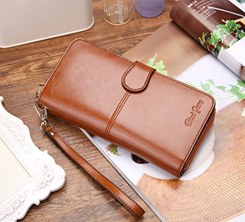 -. Title : BISIGORO Long Women Wallets Card Holder Real Leather Clutch Wallet with Zipper Pocket