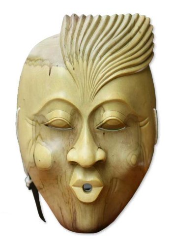 NOVICA Decorative Modern Hibiscus Wood Mask, Beige, 'The Whistler'