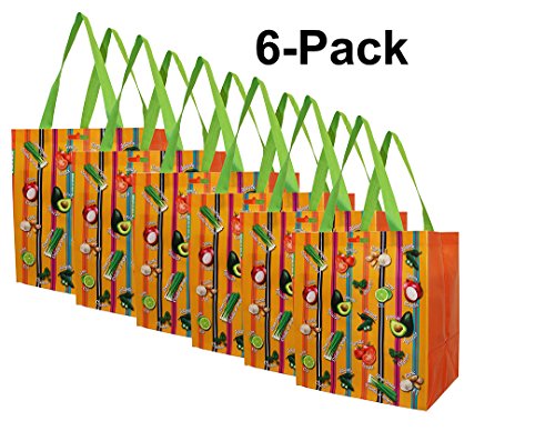 Earthwise Fruits & Veggies Eco Friendly Reusable Grocery Shopping Tote Bag ( 6 Pack)