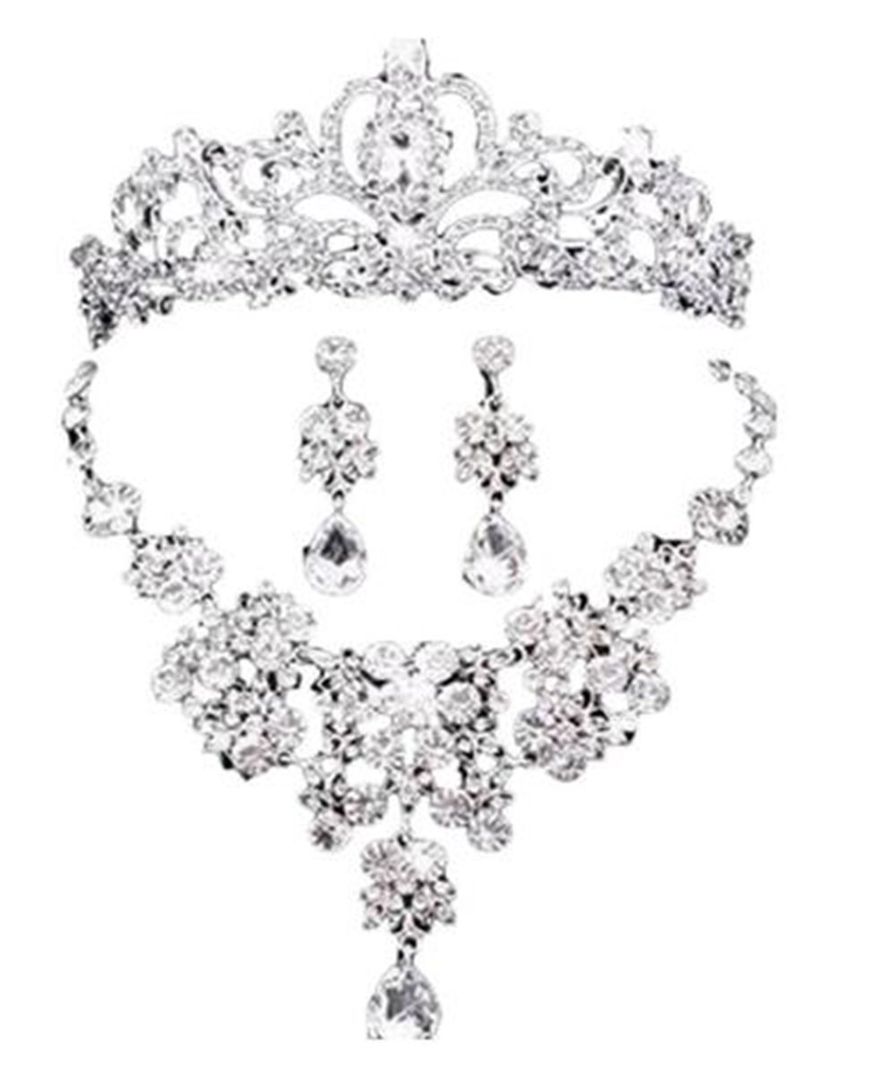Tiara Jewelry Necklace Earrings Wedding Accessories 3 Pieces Wedding Party