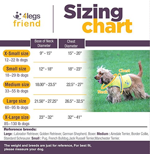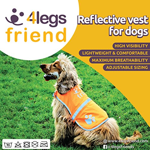 Studio : 4legs Friend Publisher : 4legs Friend Binding : Misc. Product Description Premium Waterproof Reflective Dog Safety Vest - Safely Walk, Run or any Other Activity with Your 4 legged Friend! Here are 6 reasons why you're going to LOVE your Brand New Dog Vest: 1. Top-rated Vest by dog owners. Strong and durable materials that will last very long. 2. Orange ultra-high visible color with reflective prints. Can easily be seen by cars in the dark from 500 feet away. 3. Small, medium or large dog? No problem, we have multiple sizes for perfect fit on most dogs. 4. Ergonomic, adjustable and comfortable soft touch fabric for your dog to wear, he won't even feel that he is using it. 5. 100% weatherproof, can be used in rain, snow or other bad weather. Easy to clean and keep like new. 6. You are backed with our 30 days Money Back Guarantee. No questions asked. Buy now RISK-FREE. You can easily measure and pick the right size for your dog: X-Small size - will be available soon Small size - 18-29 lb dogs. Base of Neck Diameter 12" - 18", Chest Diameter 19" - 25" Medium size - 33-60 lb dogs. Base of Neck Diameter 18.00" - 23.5", Chest Diameter 22.5" - 29" Large size - 60-100 lb dogs. Base of Neck Diameter 21.50" - 27.25", Chest Diameter 27.5" - 35.5"X-Large size - will be available soon Inside Package: 1 x Dog Reflective Safety Vest with your chosen size. We Guarantee you: Premium Quality-Checked Products Friendly and Fast Customer Support Safe Shipping with Tracking Number 100% Money Back Guarantee. Why take another unsafe walk with your best friend? Click ADD TO CART now to get this affordable Brand New Dog Vest rushed to your door today! 0