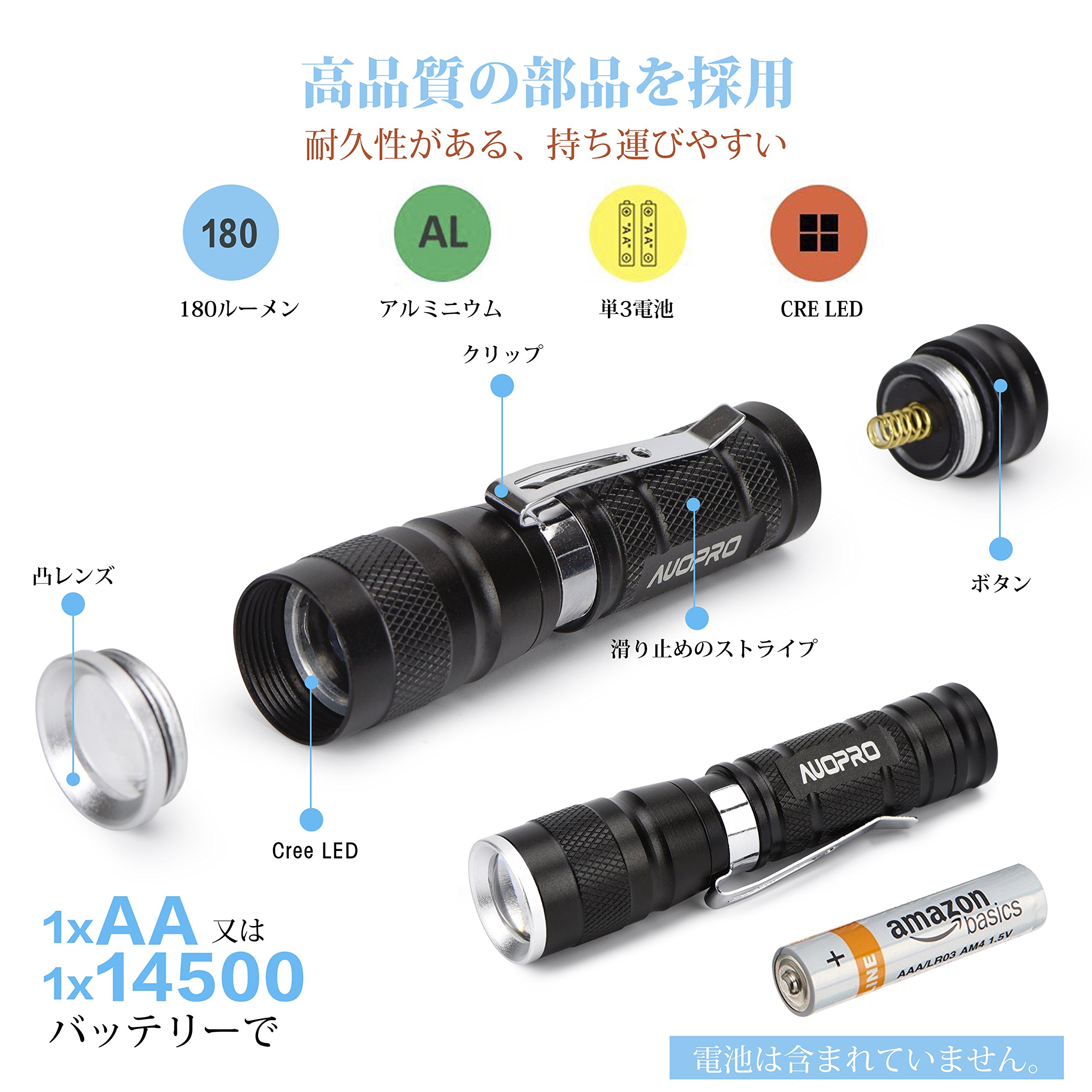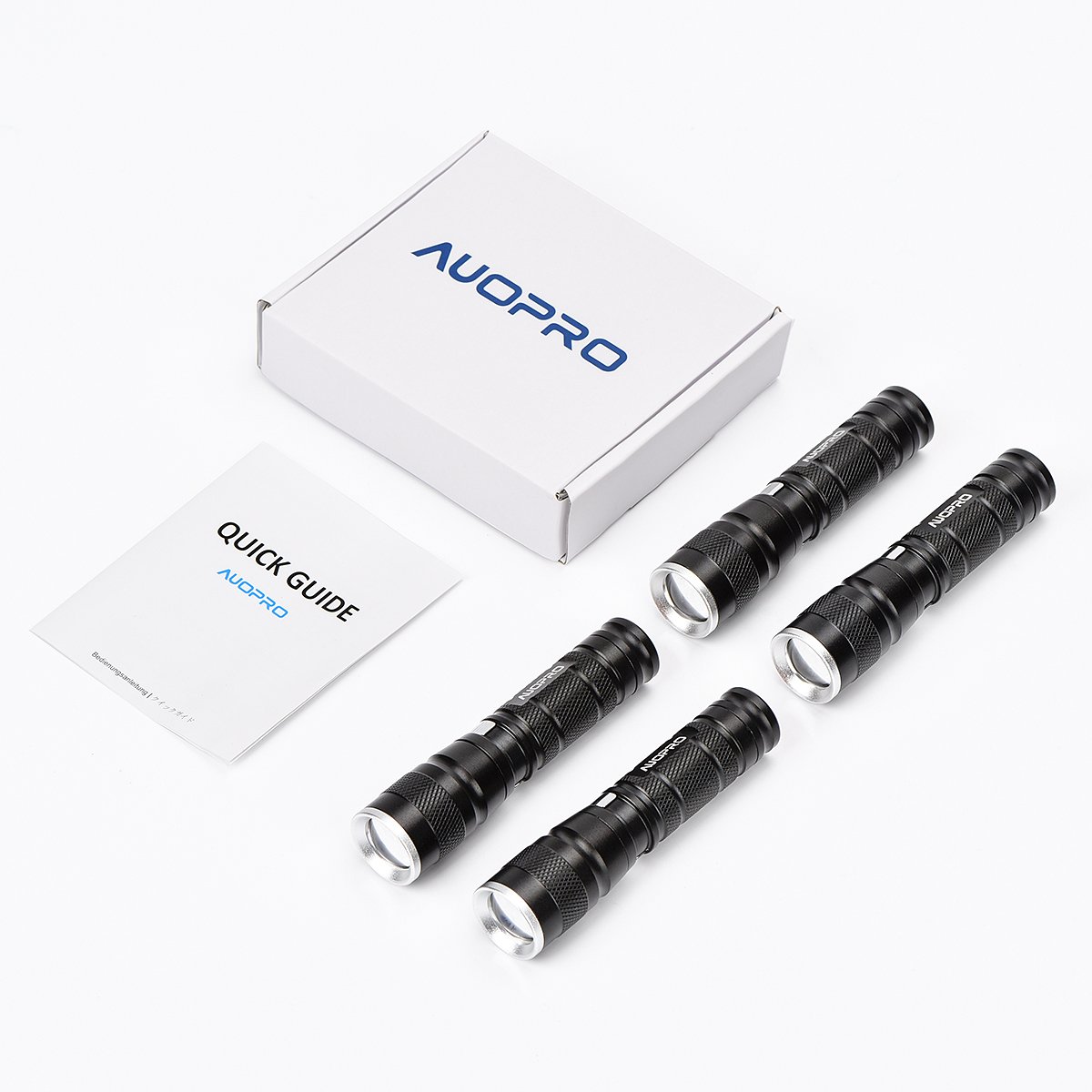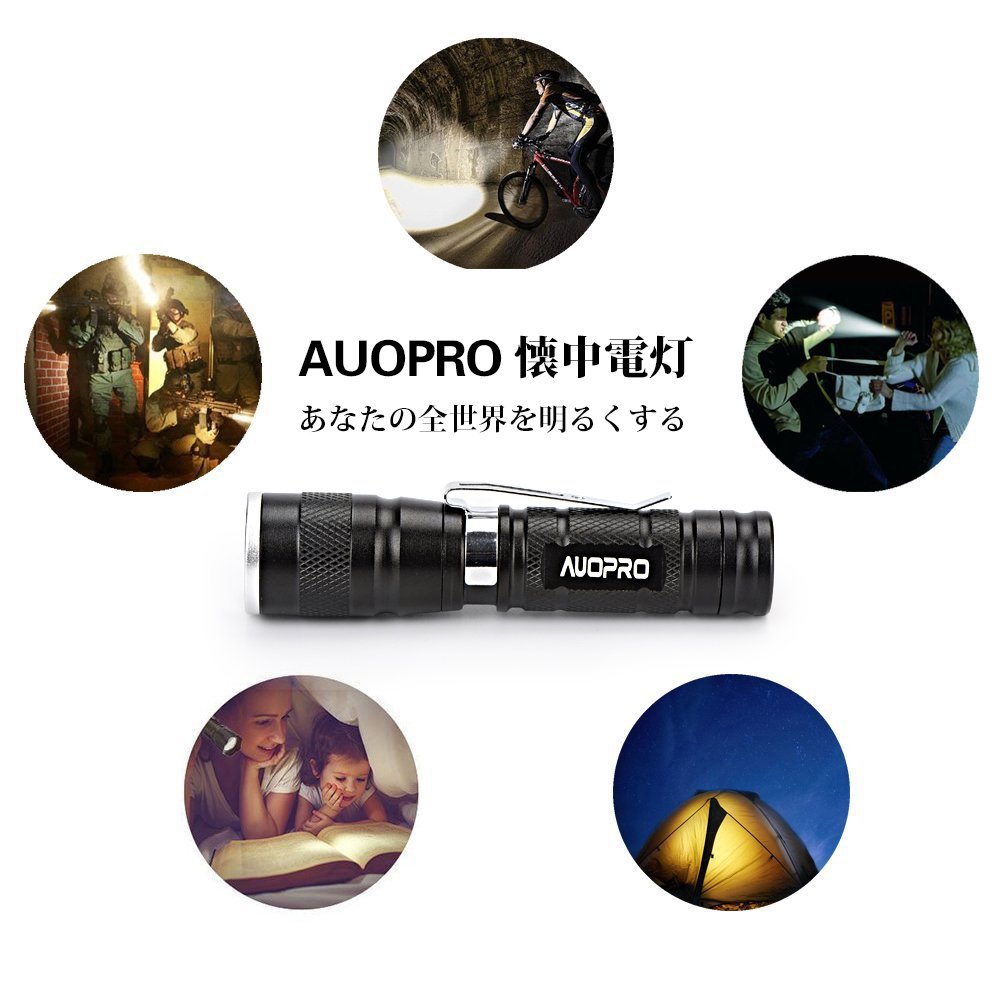 AUOPRO handy light 4 piece set ultra-small LED flashlight CREE XPE 180 lumen 3 mode IPX 4 waterproof disaster prevention 1 year warranty