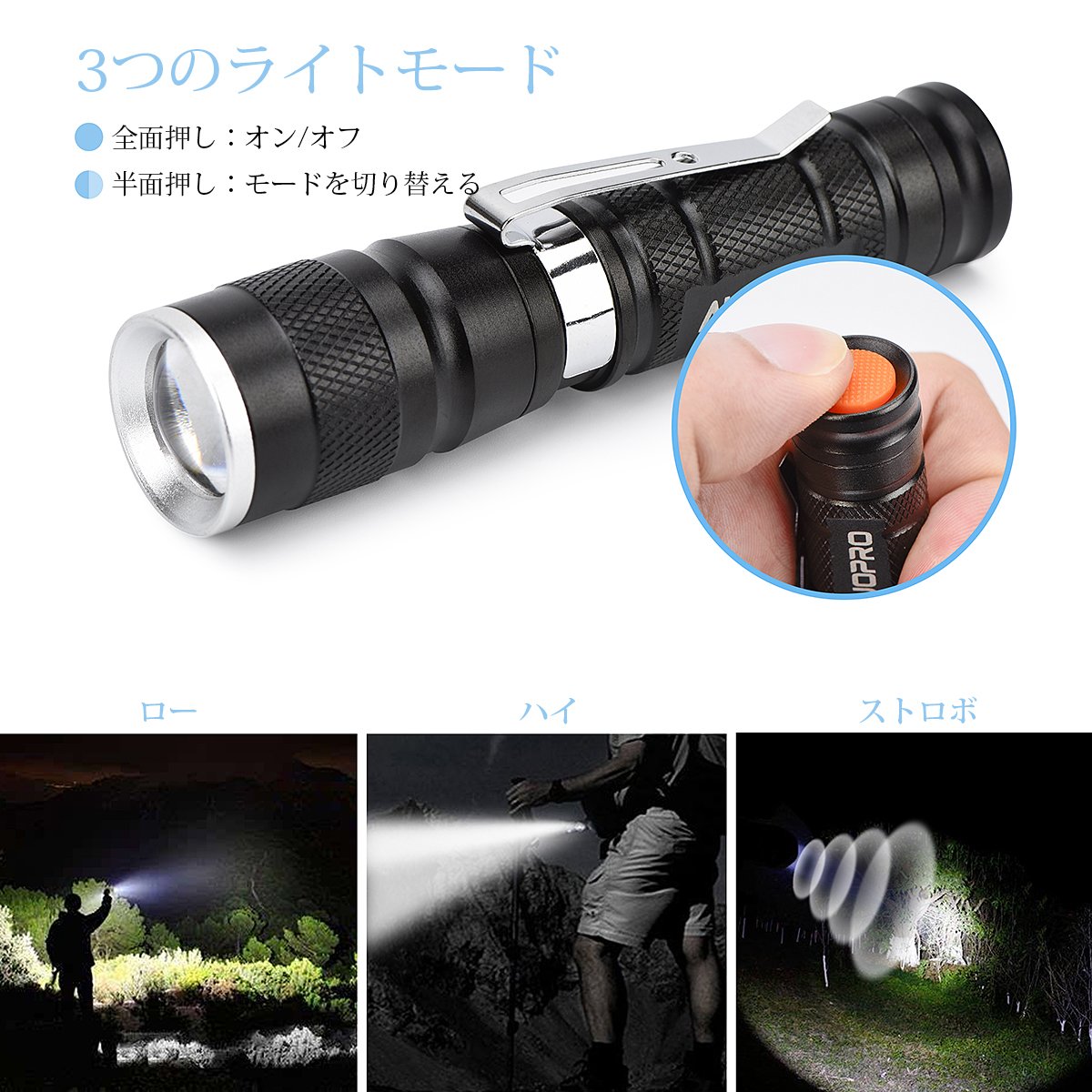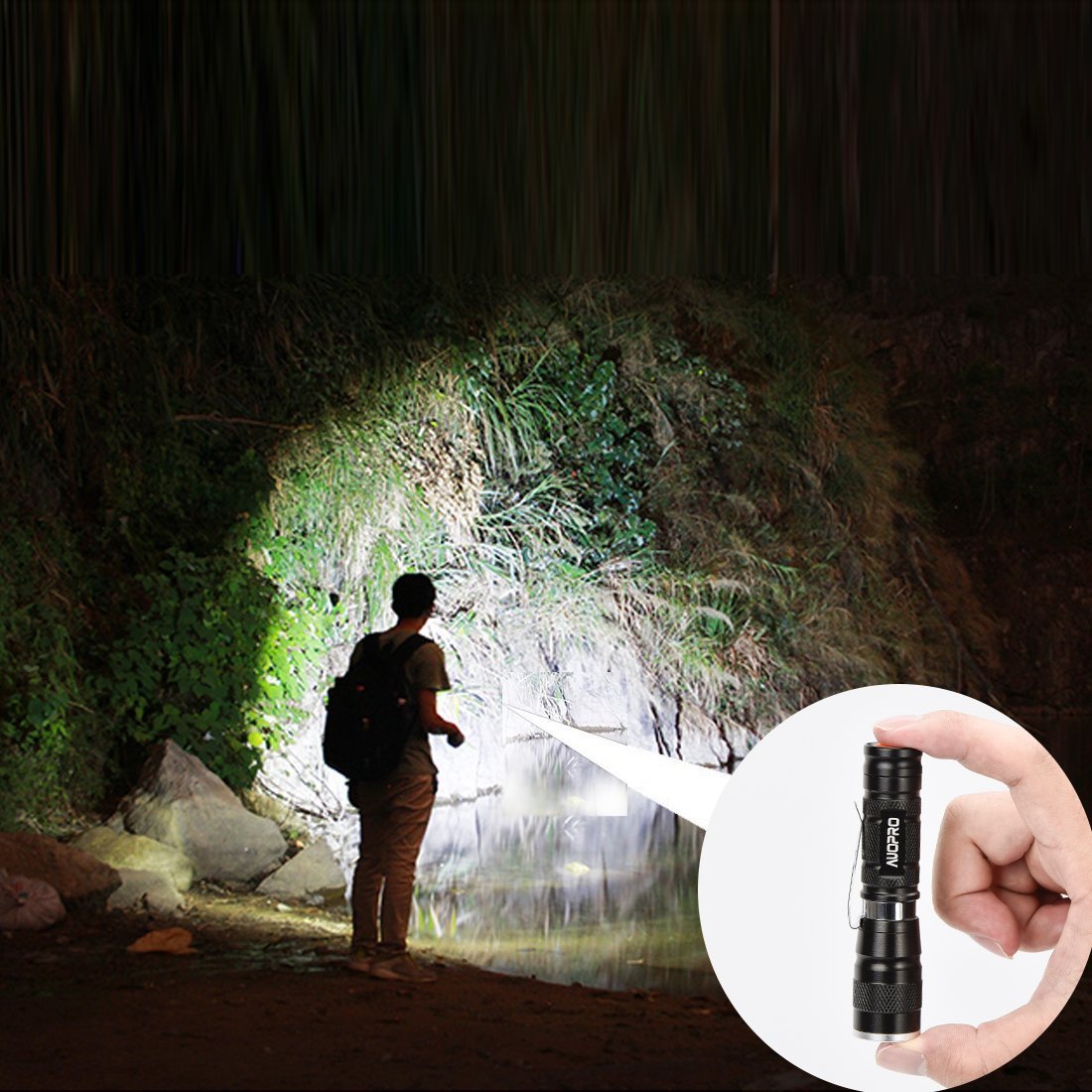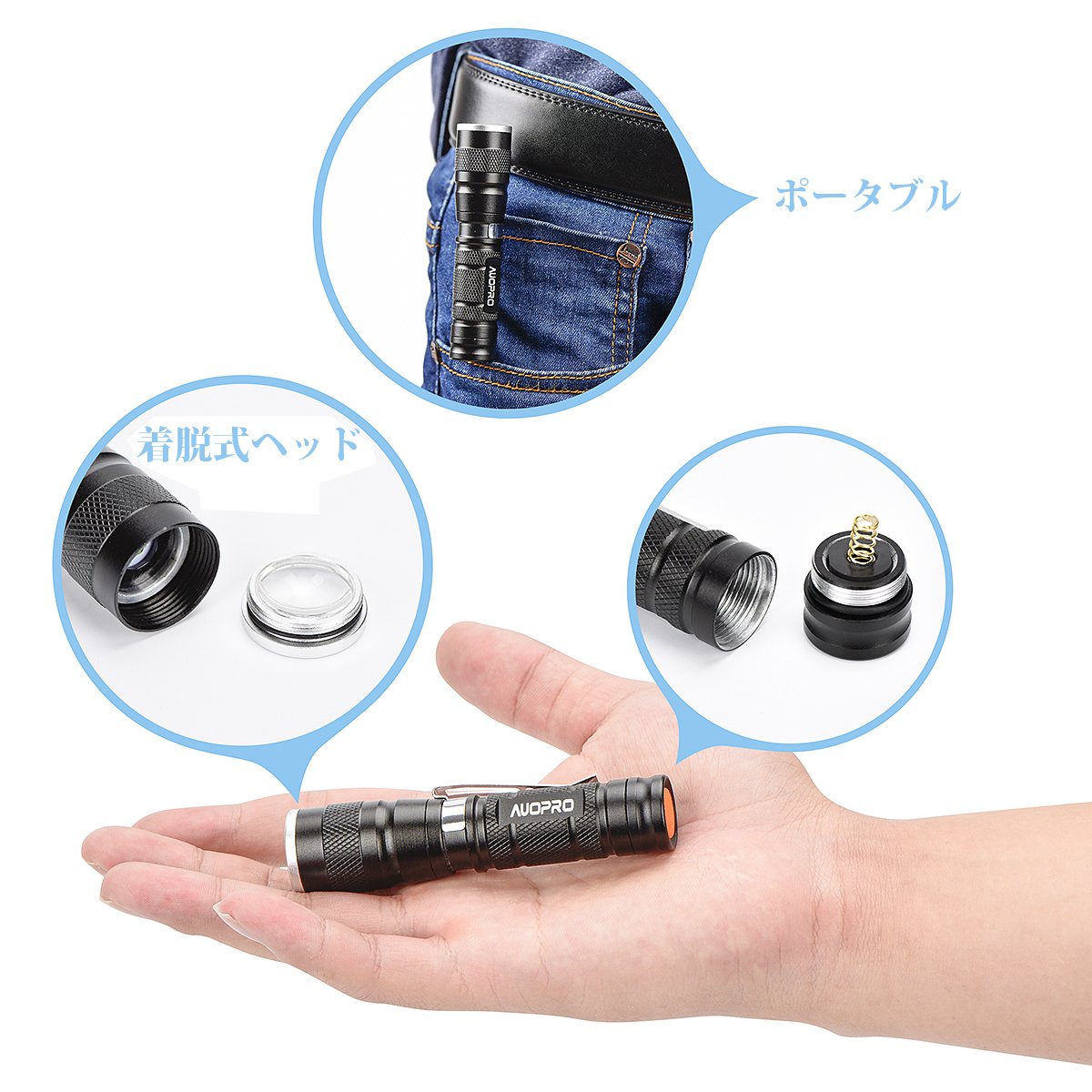 AUOPRO handy light 4 piece set ultra-small LED flashlight CREE XPE 180 lumen 3 mode IPX 4 waterproof disaster prevention 1 year warranty