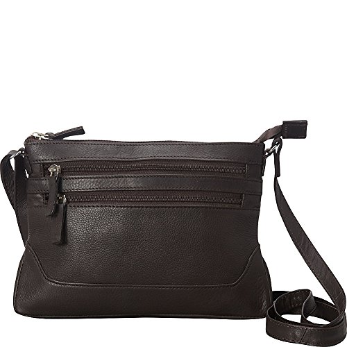 -. Brand : R & R Collections -. Department : womens -. Feature : Top zip closure / Adjustable crossbody strap with drop length of approximately 27 inches / Front features two exterior zippered pockets / Back features exterior zippered pocket / Lined interior features backwall zippered pocket -. Label : R & R Collections -. Manufacturer : R & R Collections -. PackageQuantity : 1 -. ProductGroup : Shoes -. ProductTypeName : HANDBAG -. Publisher : R & R Collections -. Studio : R & R Collections -. Title : R & R Collections Soft Drum Dyed Leather 3 Zip Crossbody with Bottom Gusset