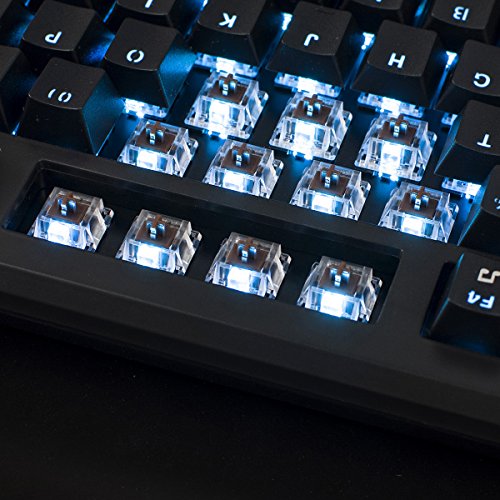 -. Feature : MECHANICAL BROWN SWITCHES: Offer the best tactile typing experience. As well being ever so slightly quieter, fitting for office use. / BACKLIT: Awesome greenish LED backlit shines through double-shotted keycaps and can be adjusted into 5 modes, gradual, breathing etc. It can support you to use the keyboard in the dark, and you can choose to switch it off as well. / KEY SHORTCUT: Anti-ghosting 104 Keys, 12 multimedia controls on Function keys. Easy to access to search, calculator, media, volume etc with FN + F1-F12. Windows key lockout option. / ERGONOMIC DESIGN: The stepped keycap makes it sleek and slope to fit your hands easily to prevent fatigue, letting you have a much more satisfying feel to each key-press. / EASY TO USE and DURABLE: USB plug and play, no driver needed. It will likely last for 10 or more years (if you don't completely destroy it with food and drink spills) and 1 years warranty.
