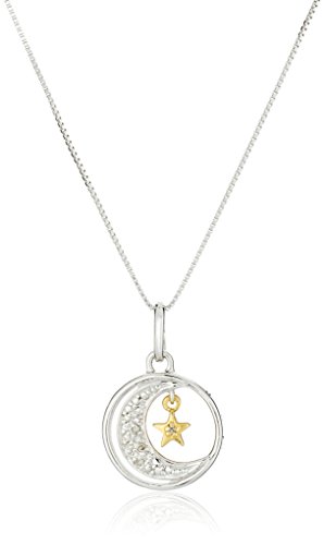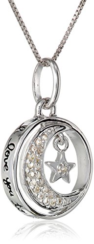 Sterling silver necklace featuring moon-and-star pendant accented with round-cut diamonds