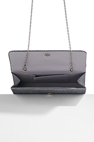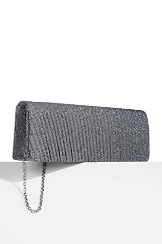 The shimmering clutch has a coarse fabric surface and vertical pleats over a foldover flap. A magnetic snap closure allows you to open and close your clutch smoothly and provides extra security for your belongings. The inner lining is crafted from smooth satin fabric. Inside you can also find a tiny pocket for your credit cards or an ID card.