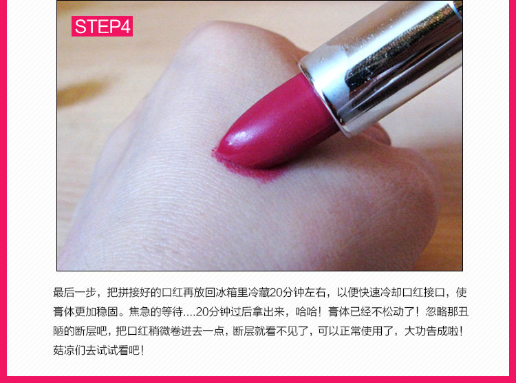 1#珠光樱花粉 2#微闪淡雅桔 3#珠光芭比粉 4#亚光浅枣红 5#珠光甜蜜红 6#奶茶浅咖微闪 7#微闪淡雅红 8#珠光玫红 9#哑光裸粉 10#珠光性感紫 11#亚光靓丽橘 12#珠光深橘红 巧妙融合的聚光釉彩配方,亲柔吸附于双唇之上,有如瓷釉般鲜艳亮泽、光漾质感, 独特的聚光晶粒闪烁着晨露般的水晶光泽,饱满立体、晶莹亮彩的美唇由此诞生。 添加了大量的高保真色素因子,强化双唇圆润感觉,赋予非凡色泽,绚丽纯净,显色持久,不易晕染, 更不易掉色。 此款口红显色度非常高、防水的也就是颜色非常艳丽、有点偏干。擦在嘴上没有油腻厚重的感觉很舒服。 接受不了有色差的MM请不要拍拉。 (只要是显色度高的口红、都会偏干持久度就高、越是滋润的口红越容易脱色大概2小时要补一次、 这款口红不易掉色。) 使用方法 1、先从下唇中间开始,往两边打圈均匀涂抹,再抹上唇。 2、涂完唇膏,轻抿双唇,令妆效服帖持久。 PS:请注意、因为膏体容易受气温的影响。 也许会受热融化表面有水珠亦或许有划痕、请买家多多包涵绝非人为。 夏天的时候可以先把唇膏口红放进冰箱、避免膏体打开时折断谢谢。 |