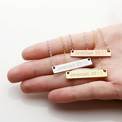 Timeless and effortless, our classic bar necklace is perfect for baptism gifts and birthday gifts. Proudly celebrate your faith with this bible verse necklace! The minimalist qualities will add just the right amount of shine to any outfit, making it perfect for daily wear and for special occasions. Show that special someone just how much you care with this meaningful gift that is sure to charm and inspire.Feature