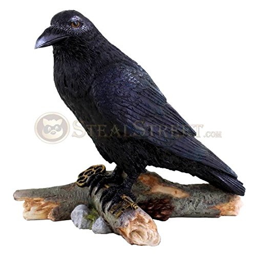 Perched Raven with Skeleton Key Statue Sculpture Black Bird Crow