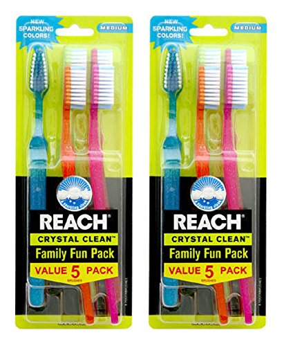 Reach Crystal Clean Family Fun Pack Medium Toothbrushes, 5 Count (Pack of 2)