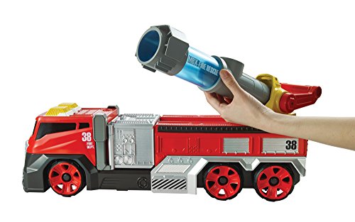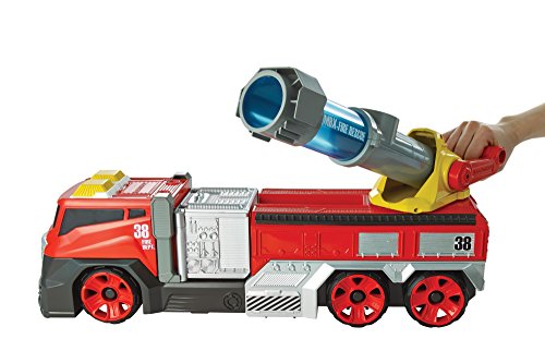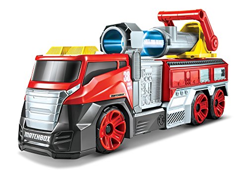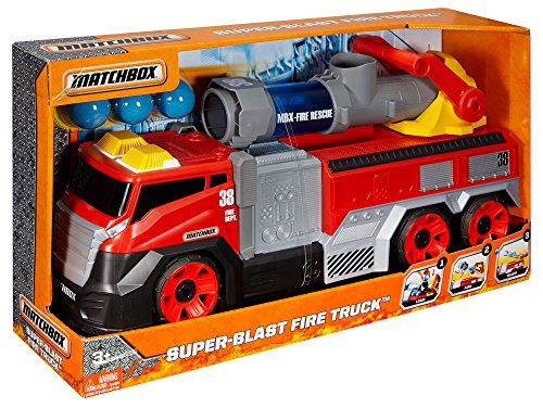 -. Binding : Toy -. Brand : Matchbox -. EAN : 0887961331202 -. Feature : Large-scale Matchbox Super Blast Fire Truck is 22-inches long, fully functional and includes a "water" firing feature! / Comes with three blue foam "water" balls that can be stored under the cannon / Load one blue "water" ball into the cannon and aim. It's easy to adjust position with a 360˚ degree turning radius and a 45˚ degree angle setting / Once you have the fire in your sights pull the lever and blast from up to 10 feet away! / Awesome real-life adventure play with an exciting big fire engine truck that can really save the day! -. IsAdultProduct : 0 -. Label : Mattel -. Manufacturer : Mattel -. Model : DRC97 -. MPN : DRC97 -. NumberOfItems : 1 -. PackageQuantity : 1 -. PartNumber : DRC97 -. ProductGroup : Toy -. ProductTypeName : TOYS_AND_GAMES -. Publisher : Mattel -. Studio : Mattel -. Title : Matchbox Super Blast Fire Truck Vehicle -. UPC : 887961331202 -. Warranty : 1 year warranty against manufacturer defects
