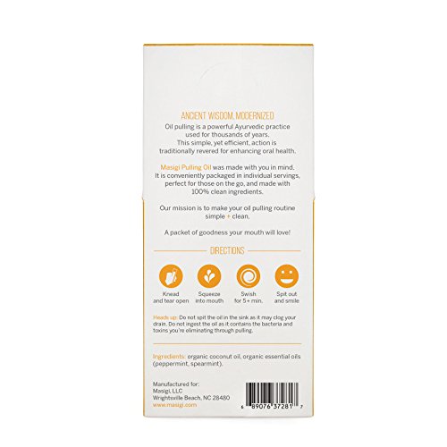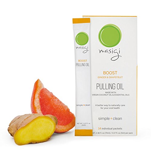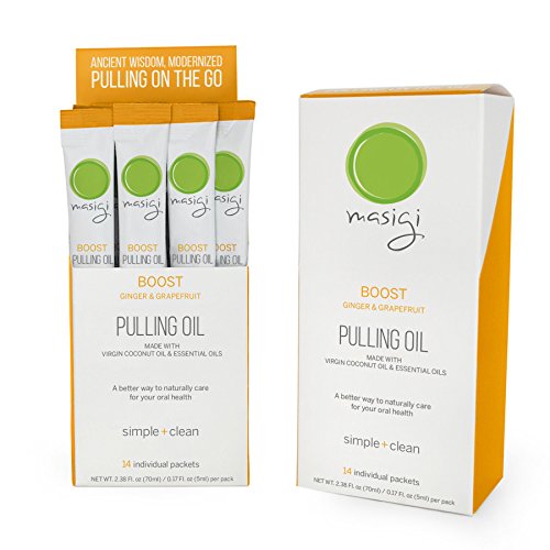 Masigi BOOST Oil Pulling Mouthwash made with Organic Coconut Oil + Essential Oils. 14 Single-Serve Travel-Friendly Packets. A Refreshing Oral Rinse - Helps Bad...