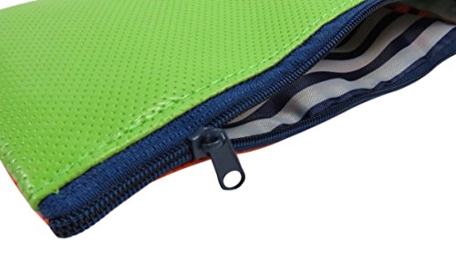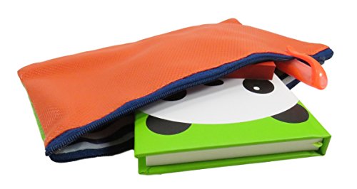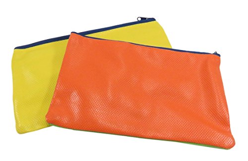 - THE SPECIFICS: Set of two dual colored bags, made of polyester, measures 8.25" x 5": one side in orange and the other green, and then a blue one and the other side is yellow. Post-it, pen and journal are for demonstration purposes only and not included.