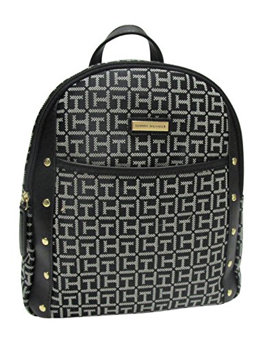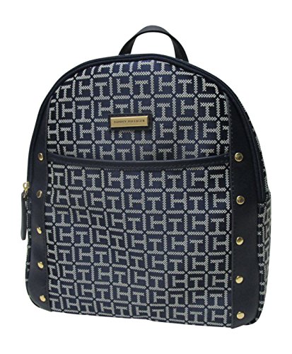 Small, fabric backpack by Tommy Hilfiger; Faux leather trim.