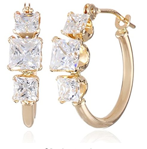 Square Cubic Zirconia Hoop Earrings in 10KT Yellow Gold
