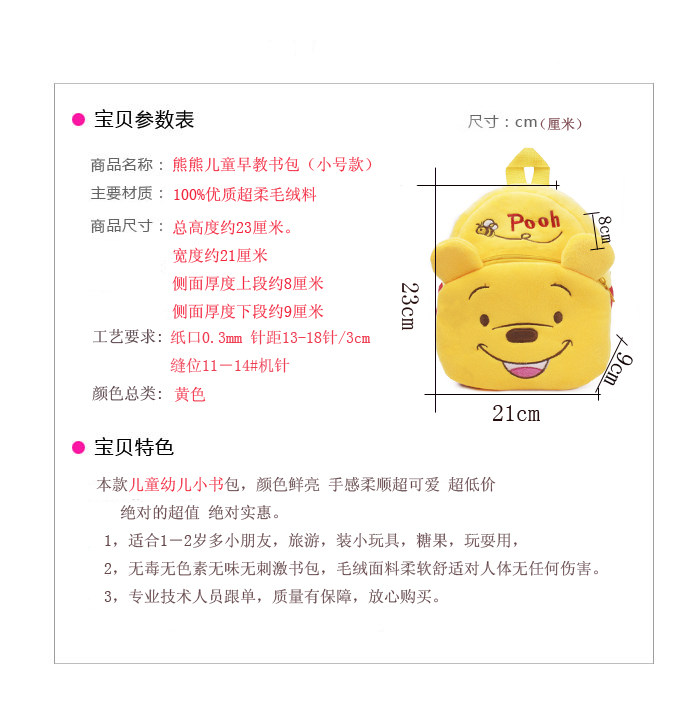 2. The user-friendly design: cute backpack・ great personality. Back in the back easily. Small bag for 1-2 year old children.
