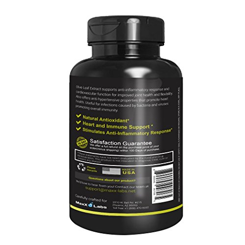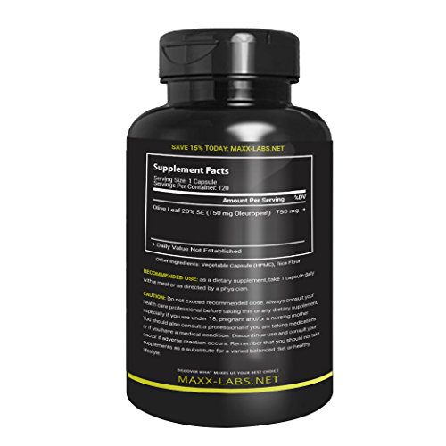 Why choose Maxx Labs Olive Leaf Extract over other competing products? Potent Product - powerful 750mg of natural organic Olive Leaf Extract 20% SE (150mg Oleuropein) in each capsule. Single Dose for Maximum Effectiveness - One capsule taken daily provides study level dosage for fast results Great Value - Other brands may offer more capsules per bottle, but requiring multiple capsules per dose to achieve the same level of MaxX Labs Olive Leaf Extract - making them more expensive Not Hiding Our Ingredients - only Olive Leaf Extract is in our capsule - unlike other "proprietary formulas" with unnecessary added ingredients and where it's hard to tell how much Olive Leaf Extract is actually there Premium Quality - All MaxX Labs supplements contain no harmful chemicals, stearates, artificial ingredients, and fillers or preservatives. Each veggie cap is free of GMO's, soy, dairy, wheat and gluten. People are known to take Olive Leaf Extract to support: - Heart - Cardiovascular Health - Cholesterol Management - Anti-Inflammatory Response - Healthy Immune System Support - Fight Against Free Radicals - For its Powerful Antioxidant Properties - Weight Loss Don't wait . . . order MaxX Labs Olive Leaf Extract now to get on the path to improved health and well being. We doubt you'll need it . . . but we offer an Absolute 100 Day - 100% Satisfaction - No Questions Asked Guarantee! 0 |