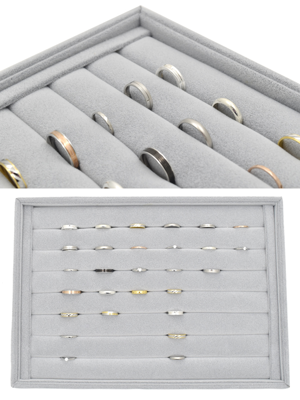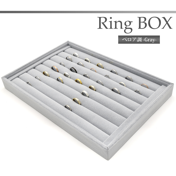 リングの陳列に適したベロア調のリングディスプレイBOX(グレー)です。
