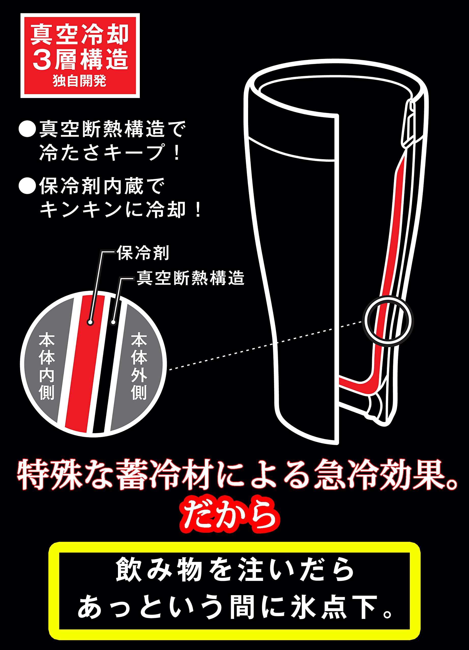 ● Mugs that can be cooled down to freezing temperatures even if you put uncooled drinks! ● Three-layer structure (cold storage material layer (inner side) + three layer structure (vacuum double layer (outer side)), therefore ice layer is vacuum double layer