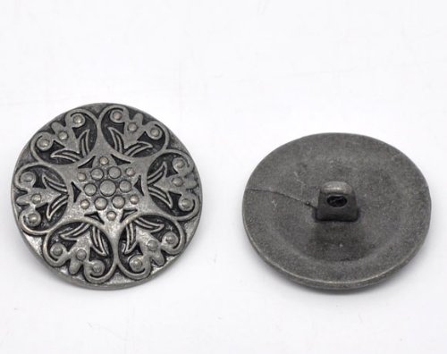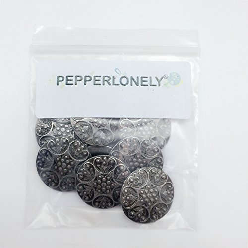 PEPPERLONELY Brand 10PC Antiqued Silver Carved Pattern Round Scrapbooking Sewing Buttons 25mm (Approximately 1 Inch)