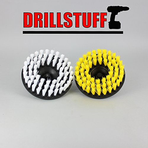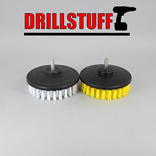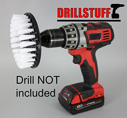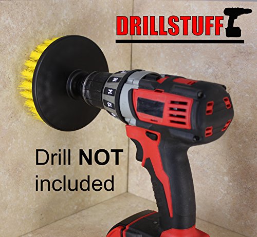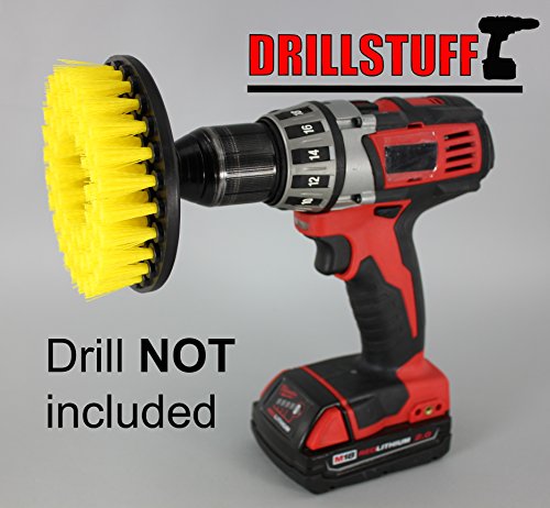 Studio : Drillstuff Publisher : Drillstuff Product Description The user controlled power rotation of your cordless drill, combined with this professional quality medium stiffness bristle brush lifts and easily extracts spots from bathroom surfaces, upholstery or carpet. This brush is manufactured exclusively for Drillstuff. The yellow medium bristle brush is meant for rigorous scrubbing of carpets, tub and tile, and flooring. The bristles are stiff enough to dislodge old stains and they will hold up better than the soft carpet brush on heavy duty carpet. You can also use this brush on tiles, grout, and floor pads. It is used for general scrubbing and cleaning of carpets, door panels, RV's, and countless applications in the home. Recommended technique to use this power brush is to angle the brush to the surface to be cleaned (never use flat on a surface) and increase or decrease the angle as you clean.Cordless drill NOT included Drill NOT included 0