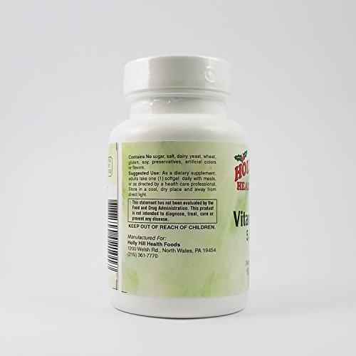 -. Binding : Health and Beauty -. Brand : Holly Hill Health Foods -. Feature : Multiple potencies based on individual requirements. Contains vitamin D-3 (cholecalciferol), a highly bioavailable form of Vitamin D. / Sourced from lanolin (vegetarian source of Vitamin D). Gluten Free. / Easy to swallow softgel capsule. Also available in a liquid form providing 2000 IU per drop. Stimulates the synthesis of osteocalcin, an important protein involved in bone formation. Helps maintain adequate blood calcium levels which help support cellular metabolic processes and neuromuscular function. / Vitamin D is essential for calcium and phosphorus absorption and utilization. Stimulates osteoblast (bone producing cell) activity which helps maintain bone density and strength. Quality and Potency Guaranteed. / Quality and Potency Guaranteed -. Label : Reliance Private Label Supplements -. Manufacturer : Reliance Private Label Supplements -. ProductGroup : Health and Beauty -. ProductTypeName : HEALTH_PERSONAL_CARE -. Publisher : Reliance Private Label Supplements -. Studio : Reliance Private Label Supplements -. Title : Holly Hill Health Foods, Vitamin D3 5000 IU
