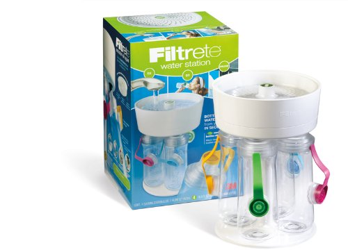 The Filtrete Water Station quickly filters tap water directly into four 16.9 oz. bottles reducing chlorine taste, odor and sediment. Each system comes with 4 bottles and a Filtrete Fast Flow filter that lasts up to 100-gallon, or about 3 months.