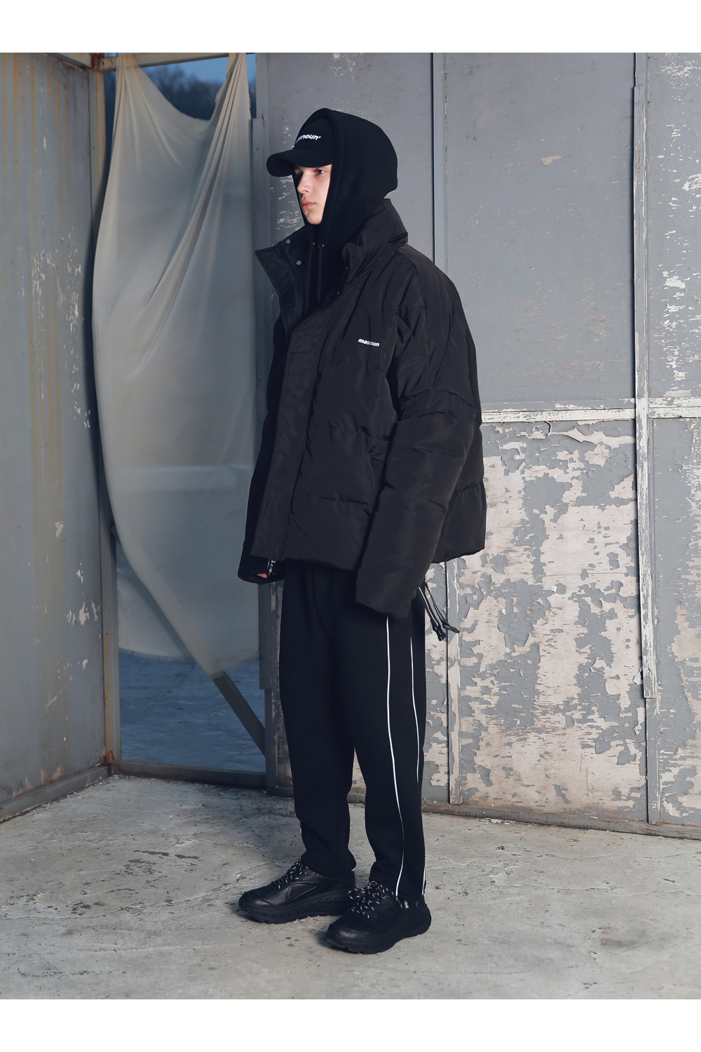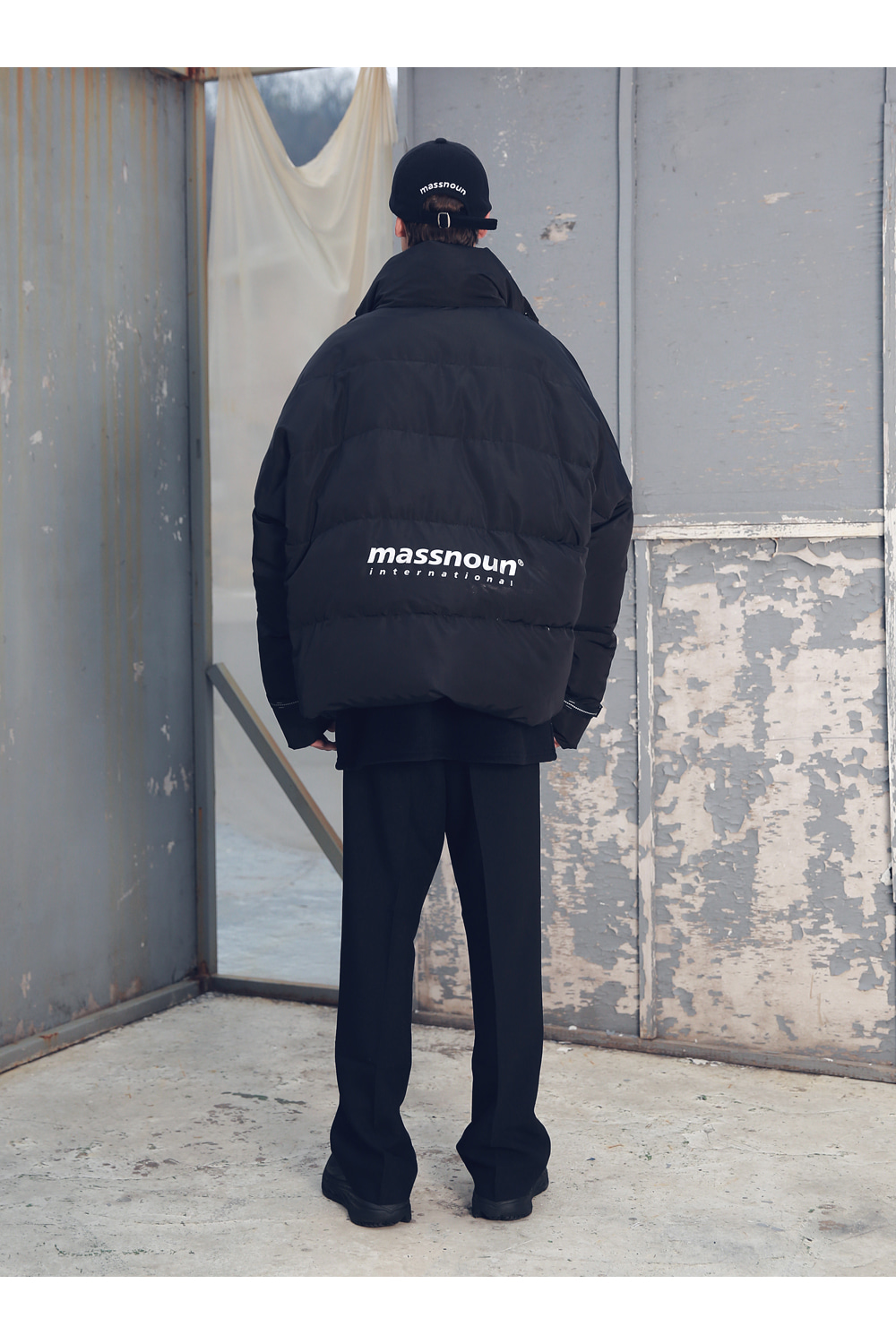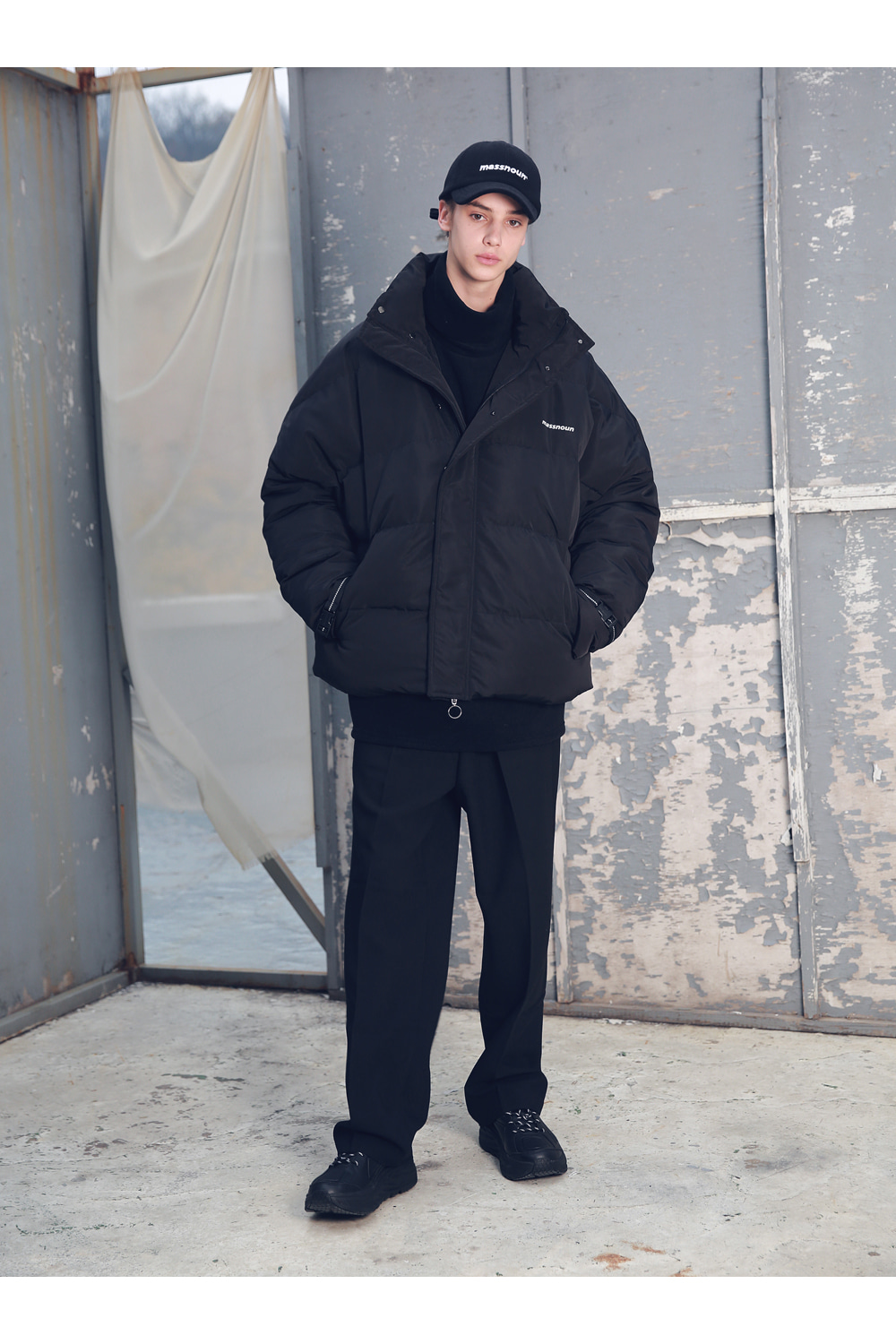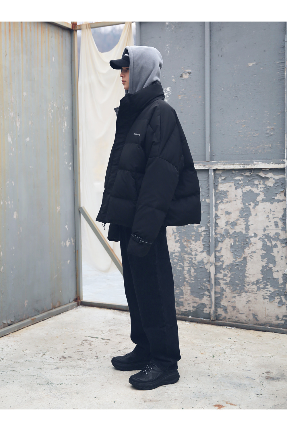 전체적인 라인의 형태와 핏감처리에 중점을 둔 오버사이즈 핏 제품입니다.