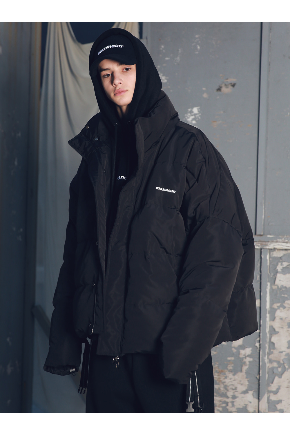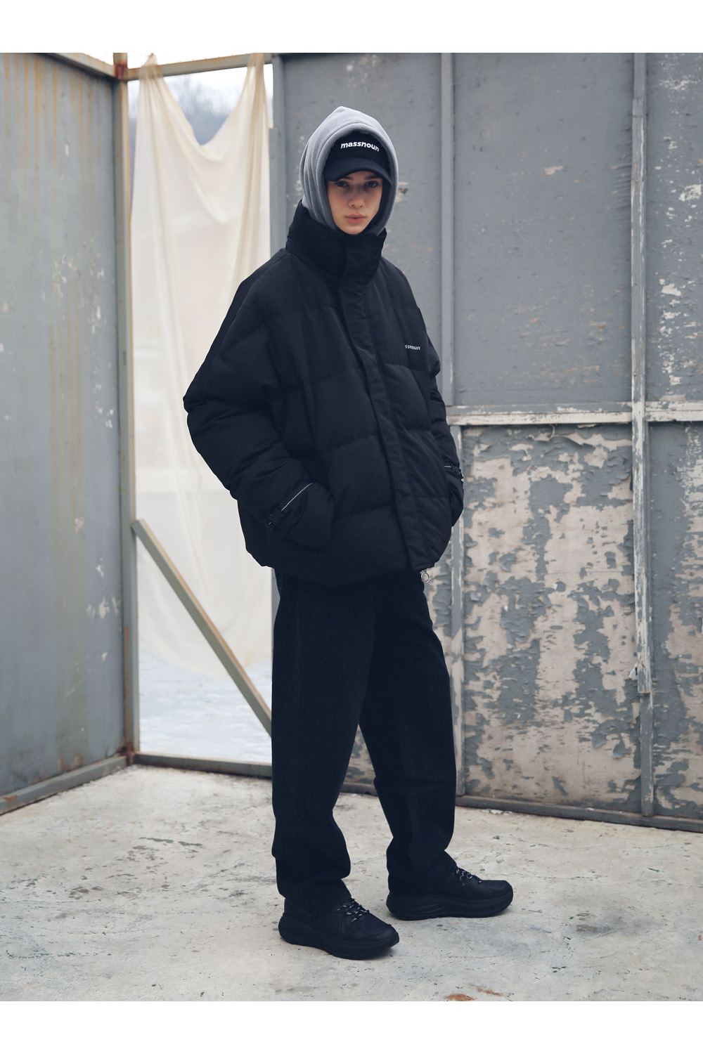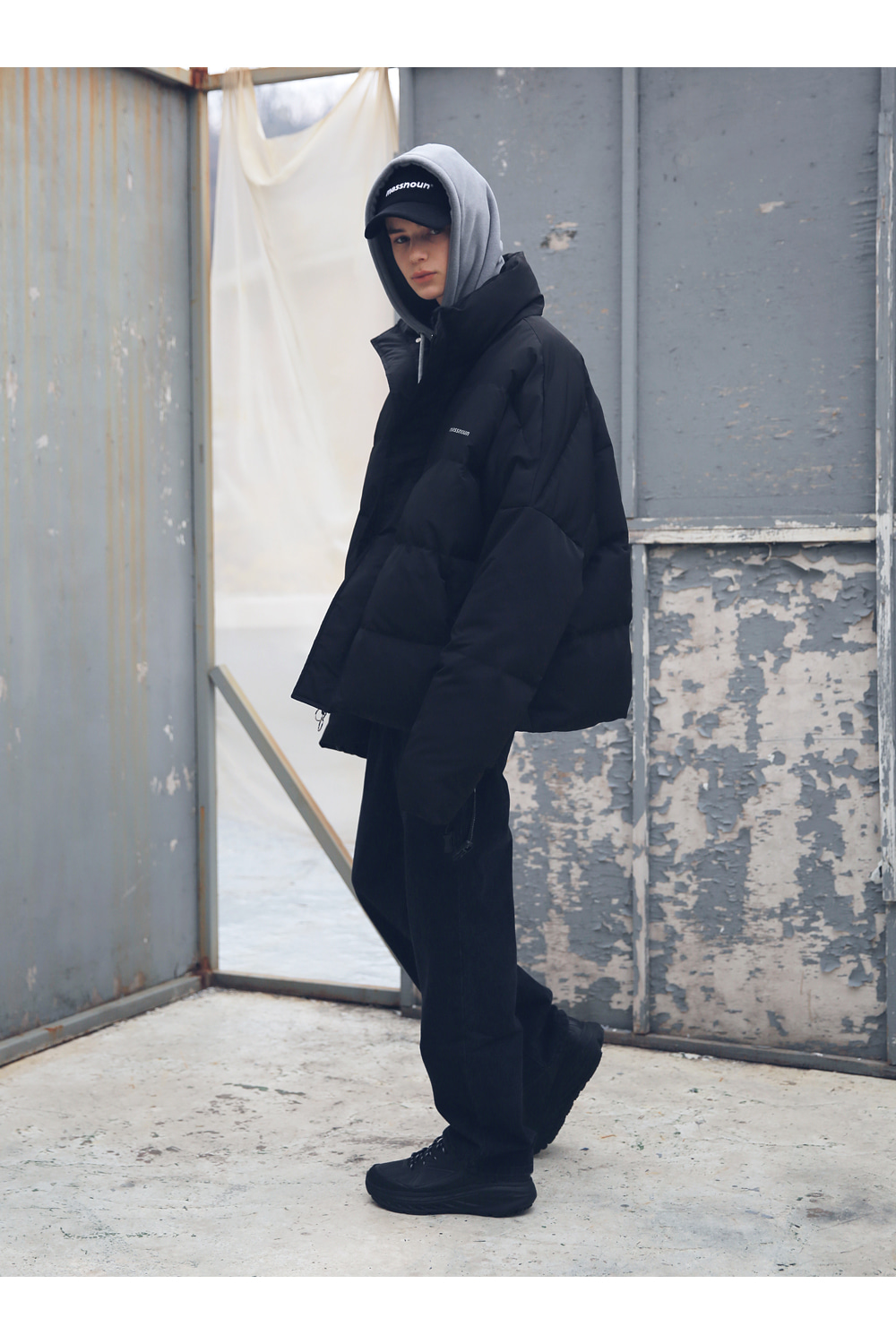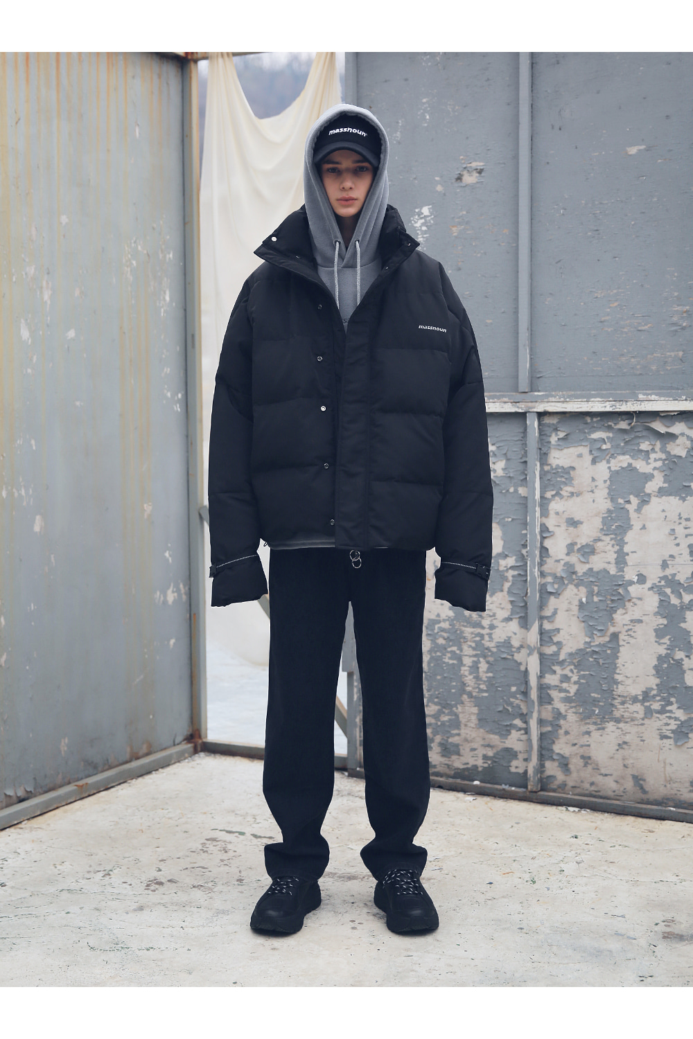 전체적인 라인의 형태와 핏감처리에 중점을 둔 오버사이즈 핏 제품입니다.