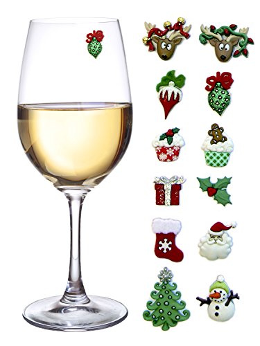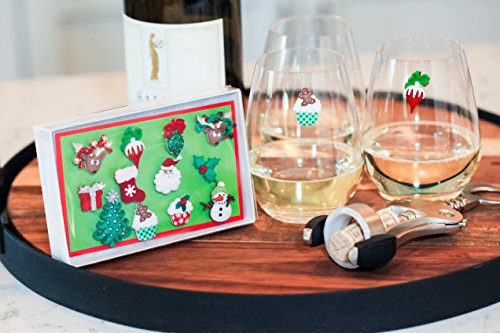 -. Title : Christmas Holiday Magnetic Wine Glass Charms & Cocktail Markers Set of 12 - Great Christmas Hostess Gift or Stocking Stuffer