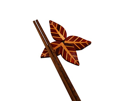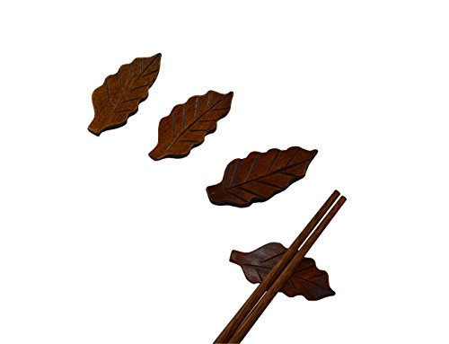 -. Title : 4 Pieces Hand crafted Leaf Shape Wooden Chopsticks Spoon Forks Rest Holder