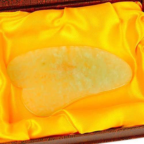 Pure Jade Gua Sha Anti-Aging massage tool, Packaged in a Traditional Silk Lined Box, Individually Hand Carved Gua Sha Scraping Board by White Lotus Anti...