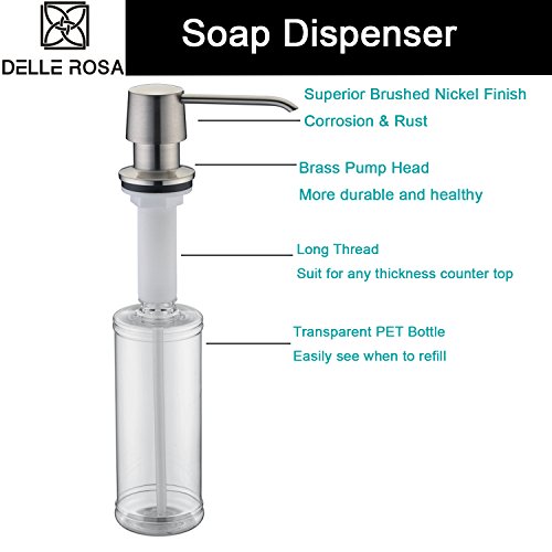 Refin Brass Sink Soap Dispenser Pump Brushed Nickel Brass Head Kitchen Sink Soap Dispenser Soap or Lotion Pump Dispenser