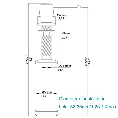 Brass head and ABS Pump is Durable and Environmental. 320ml container. Refill from the counter top (Pull-out removable pump-head to fill).