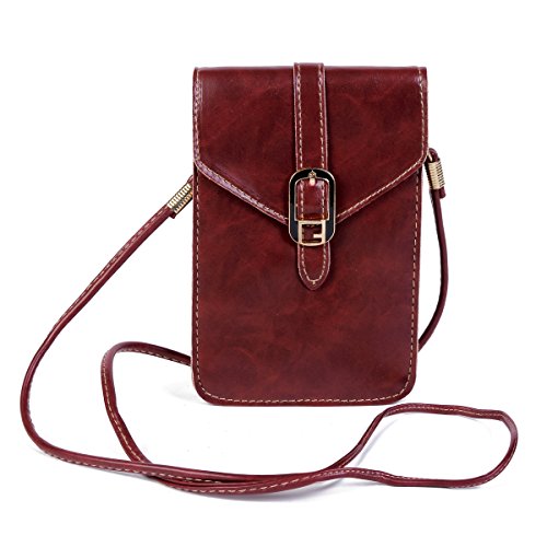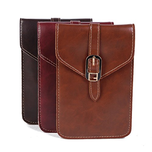 Hergestellt aus weichem Kunstleder.100% Brandneu.Durch Magnetverschluss verschlossen.Die Handytsche kann auch bequem und einfach getragen werden .Es zeichnet sich durch tolle Qualität und hochwertige Verarbeitung aus.Passend für alle gängige Smartphones und Handys.Abnehmbarer Schultergurt.Verzierter Riemen auf der Vorderseite.Es verfügt über 2 große Fächer für Münzen,Handy,Schlüssel oder Karten.Drei Farben zur Auswahl:braun,weinrot und dunkelbraun.Größe:17x11x1cm.Feature